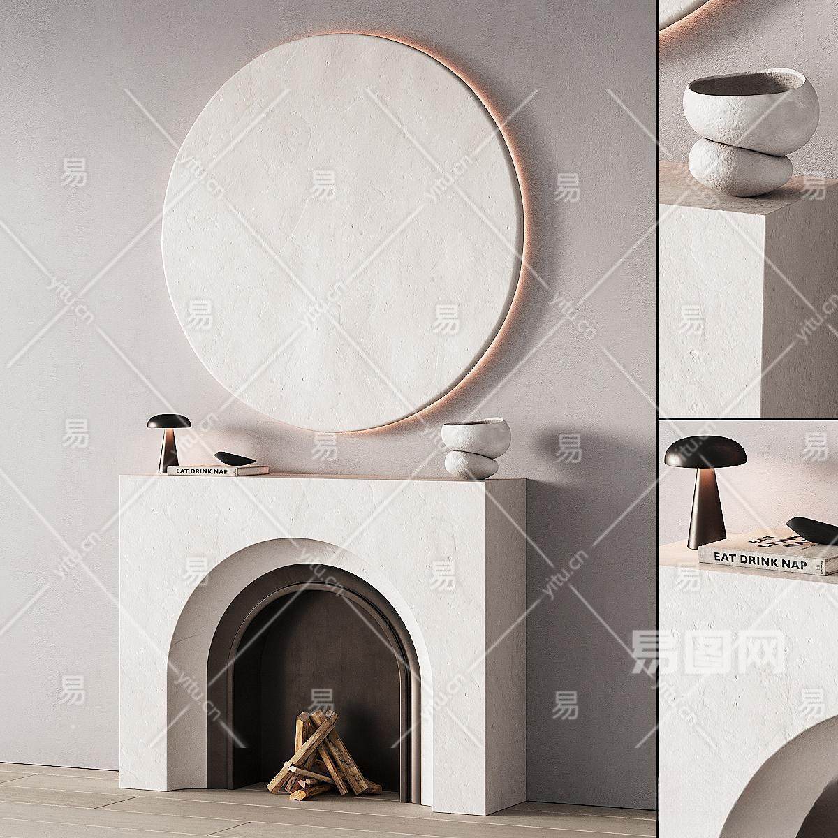 现代壁炉 极简壁炉 装饰品摆件 木材