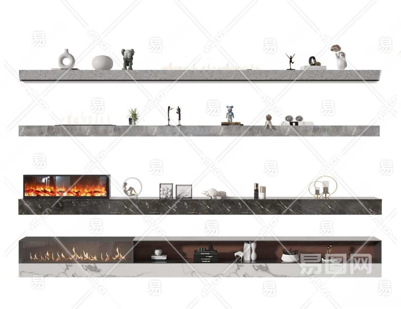 现代壁炉3D模型下载