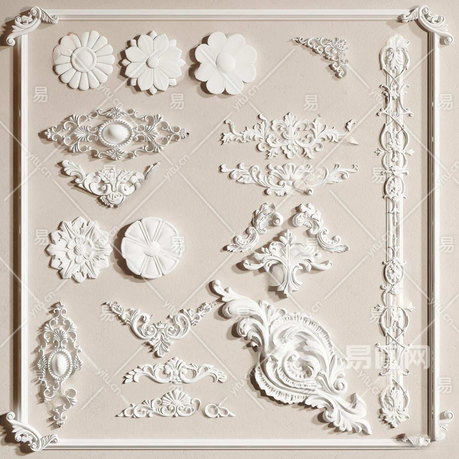 简欧石膏雕花3D模型下载