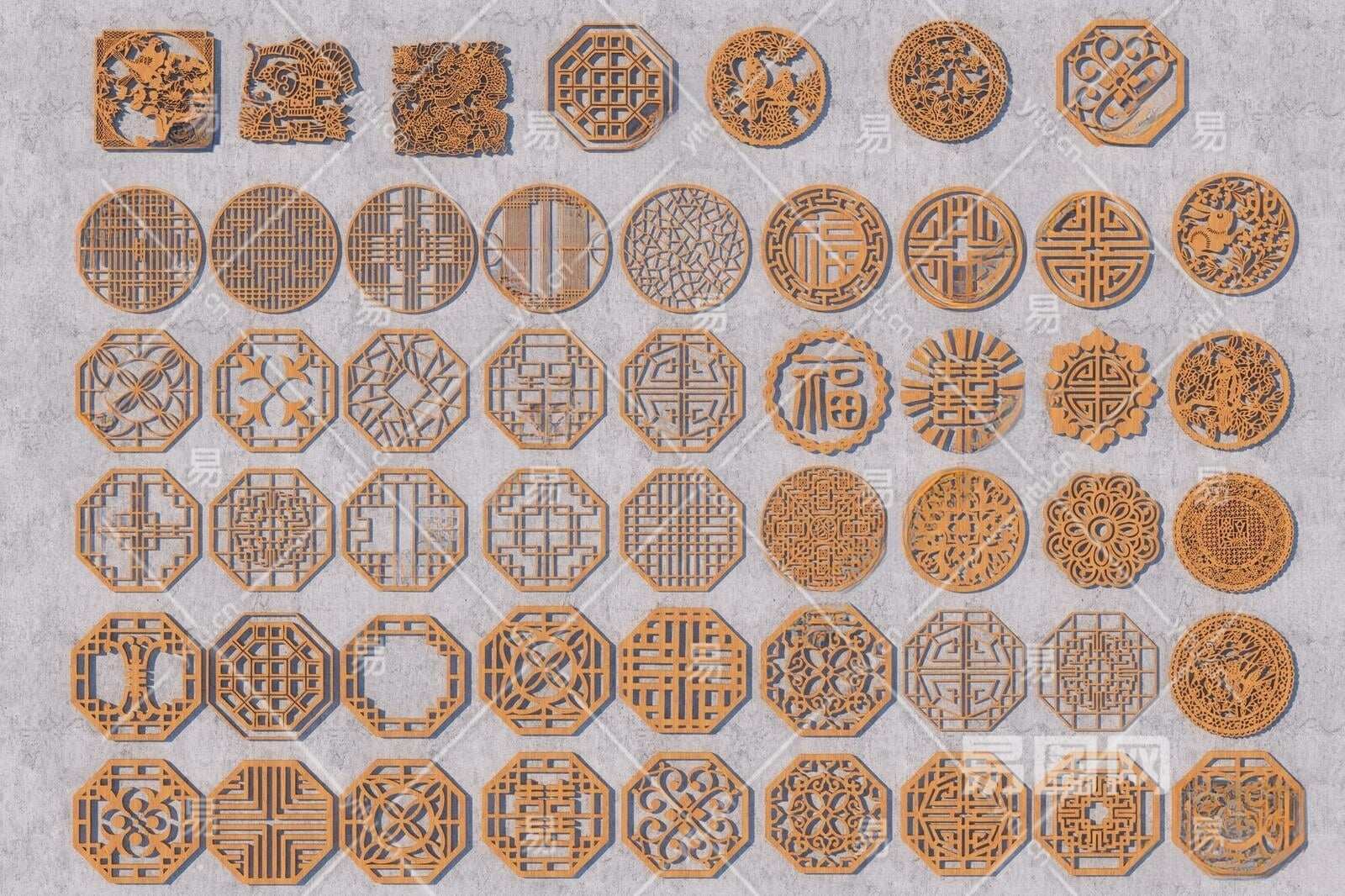 中式镂花窗格雕花3D模型下载