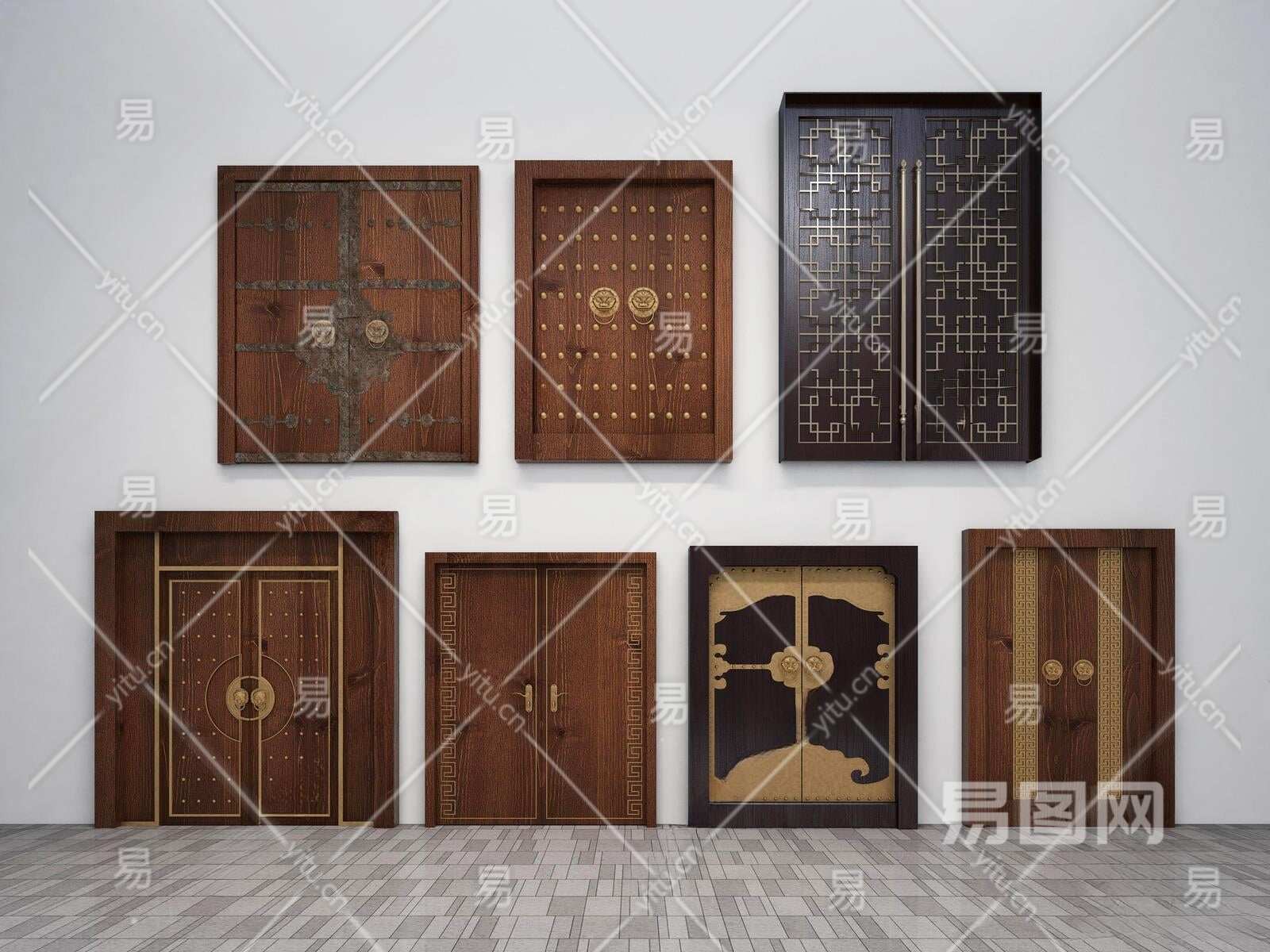 新中式双开门3D模型下载