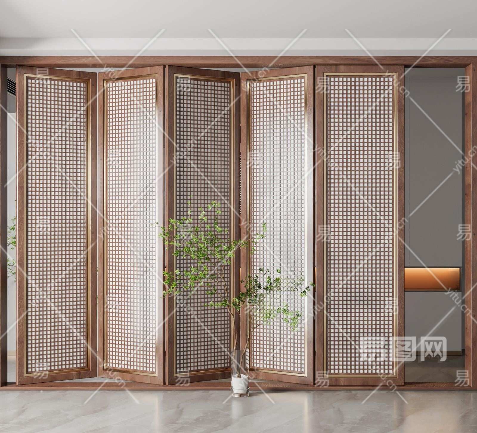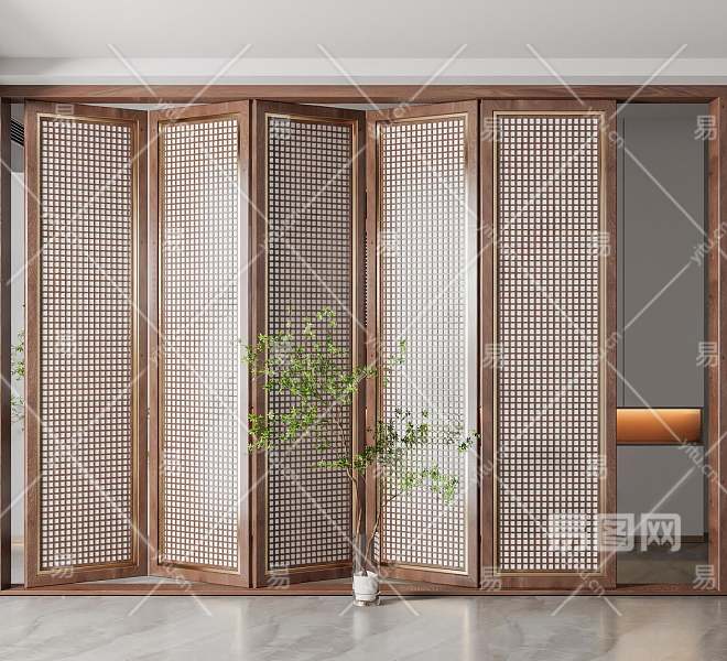 新中式折叠门3D模型下载
