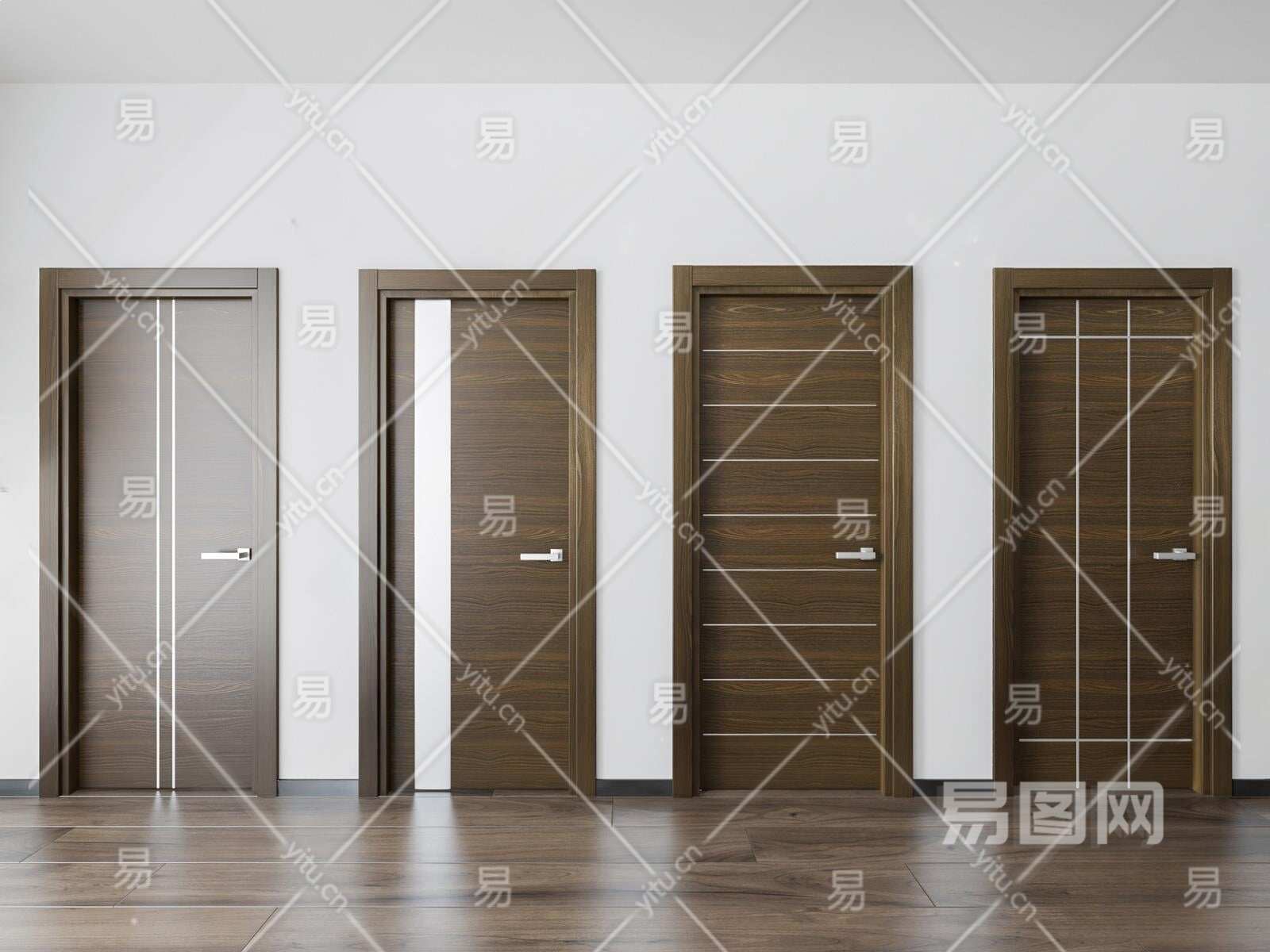 现代实木门3D模型下载