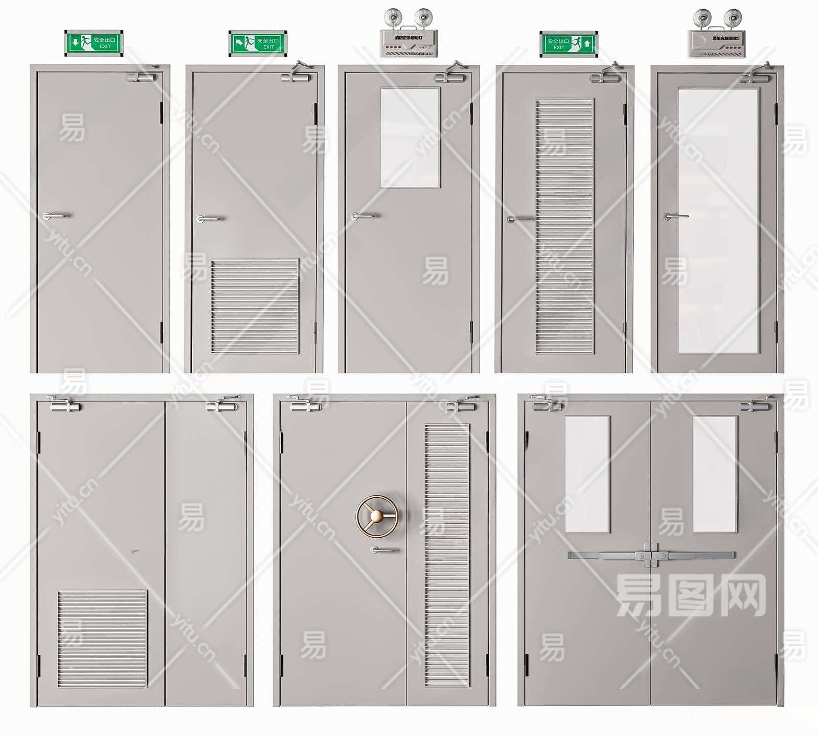 现代消防门组合3D模型下载