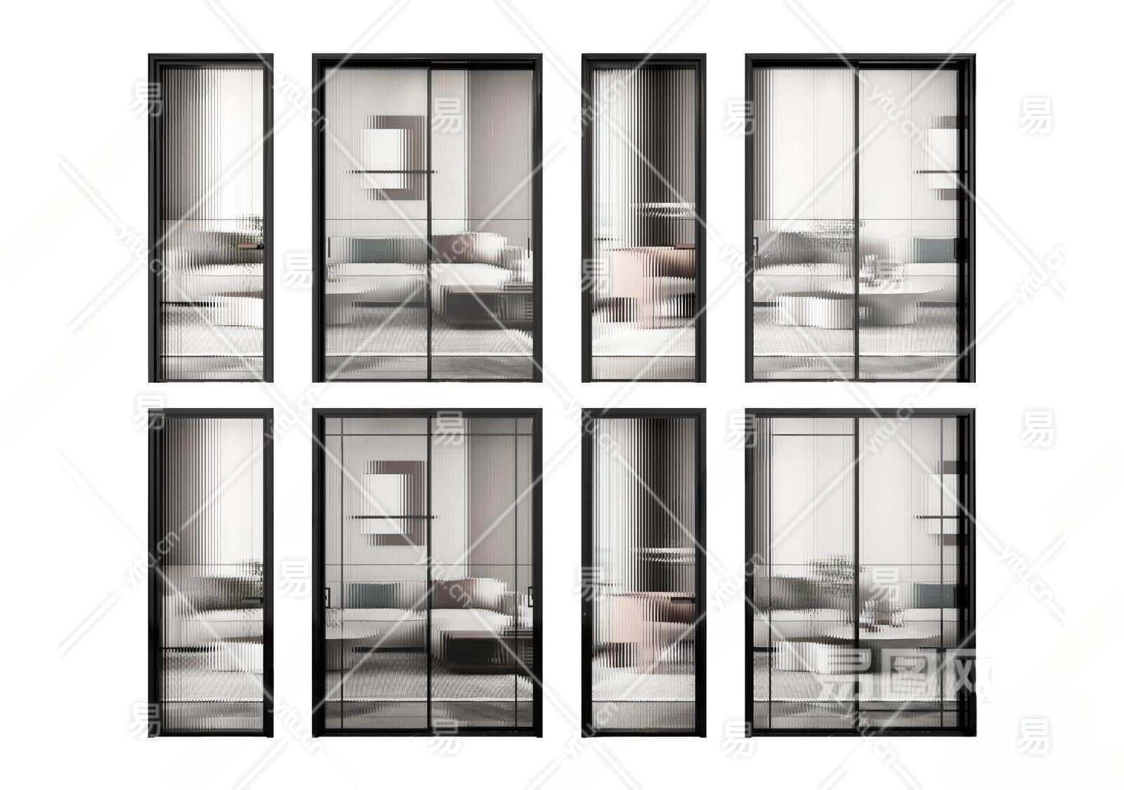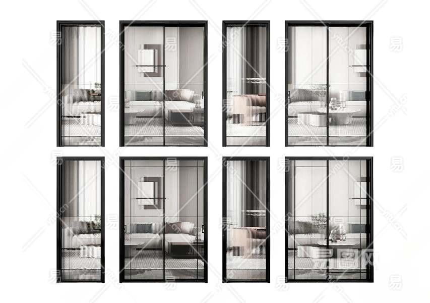 现代推拉门3D模型下载