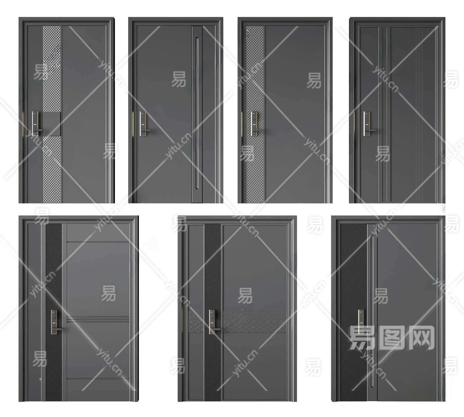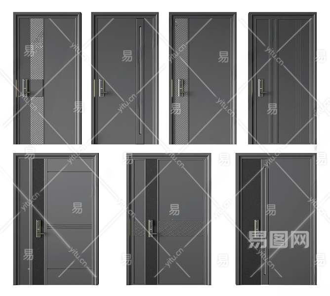 现代防盗门组合3D模型下载