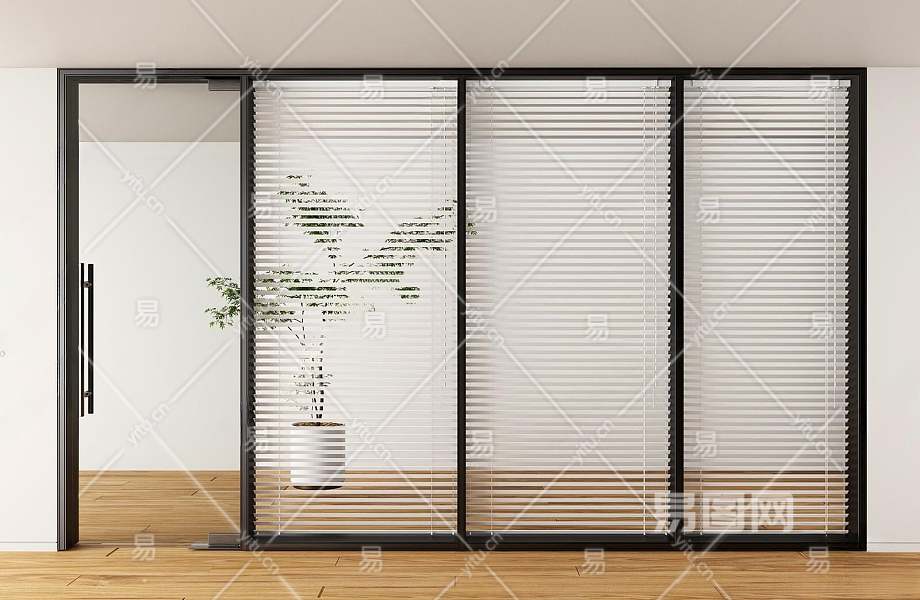 现代办公室玻璃门3D模型下载