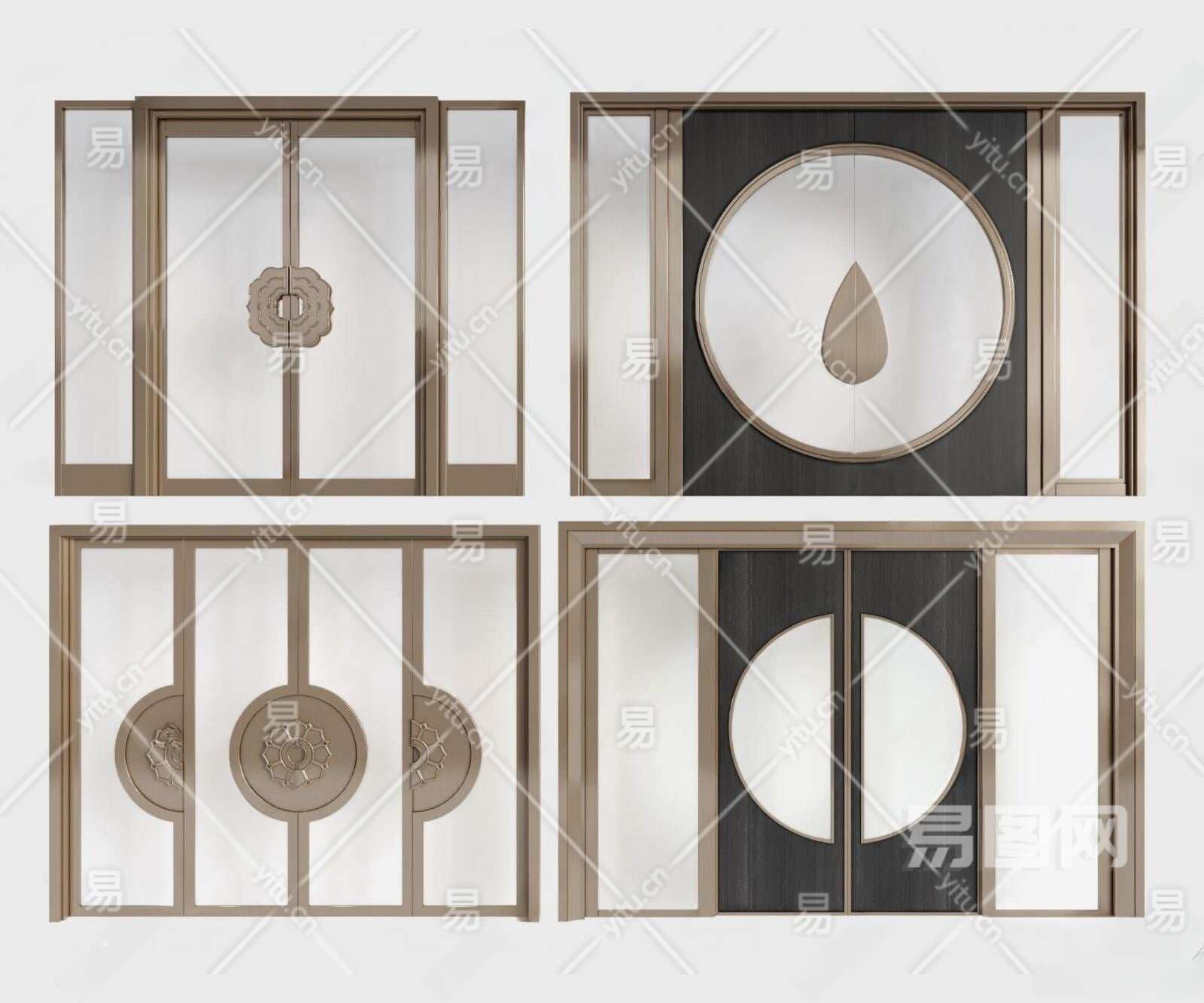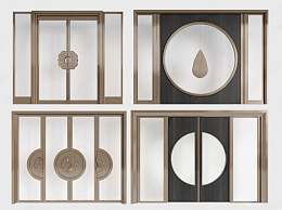 新中式金属玻璃门3D模型下载
