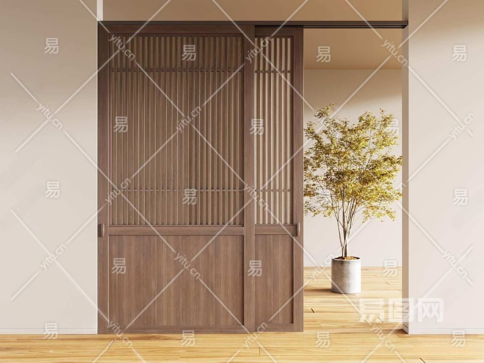 新中式推拉门3D模型下载