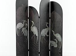 现代仙鹤古风屏风