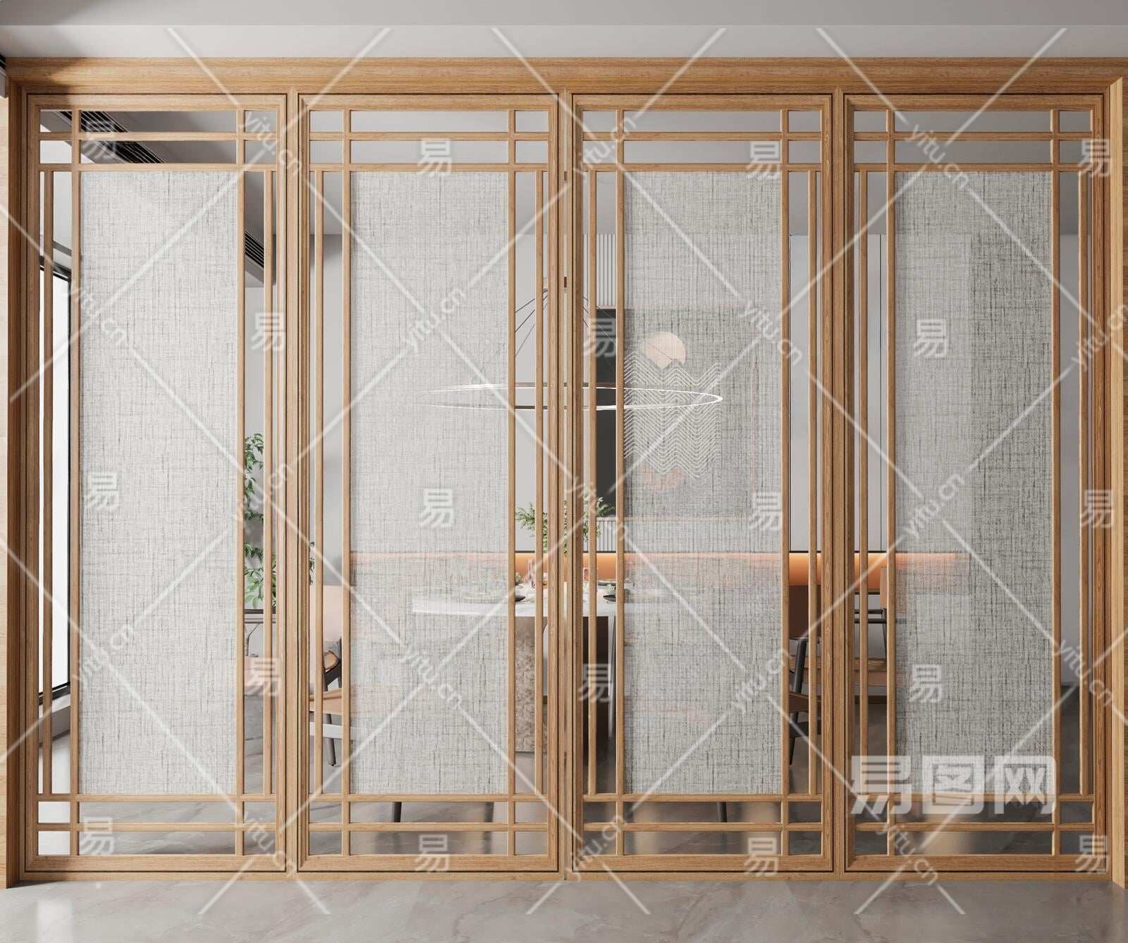 新中式隔断3D模型下载