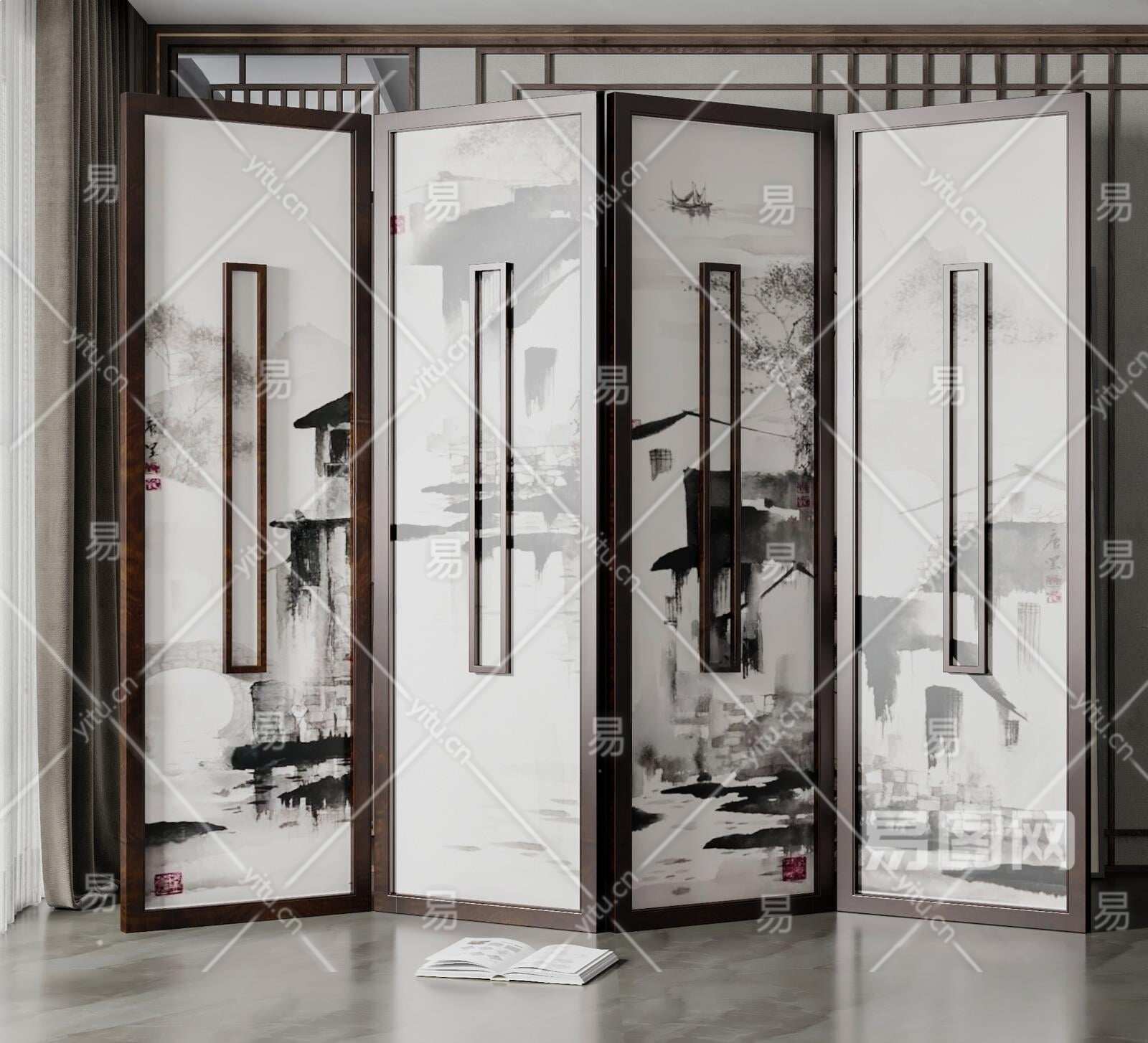 新中式屏风3D模型下载