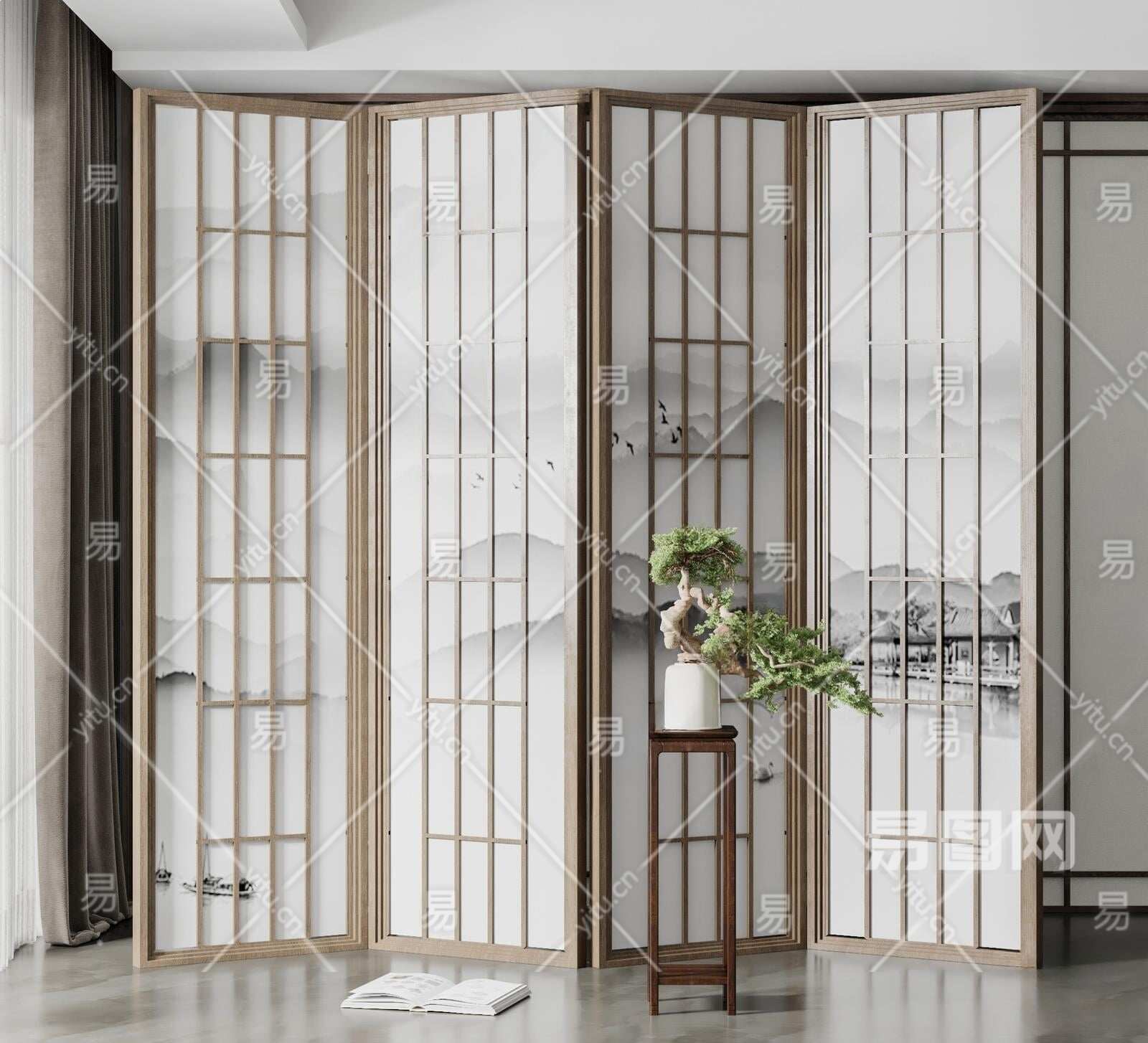 新中式屏风3D模型下载