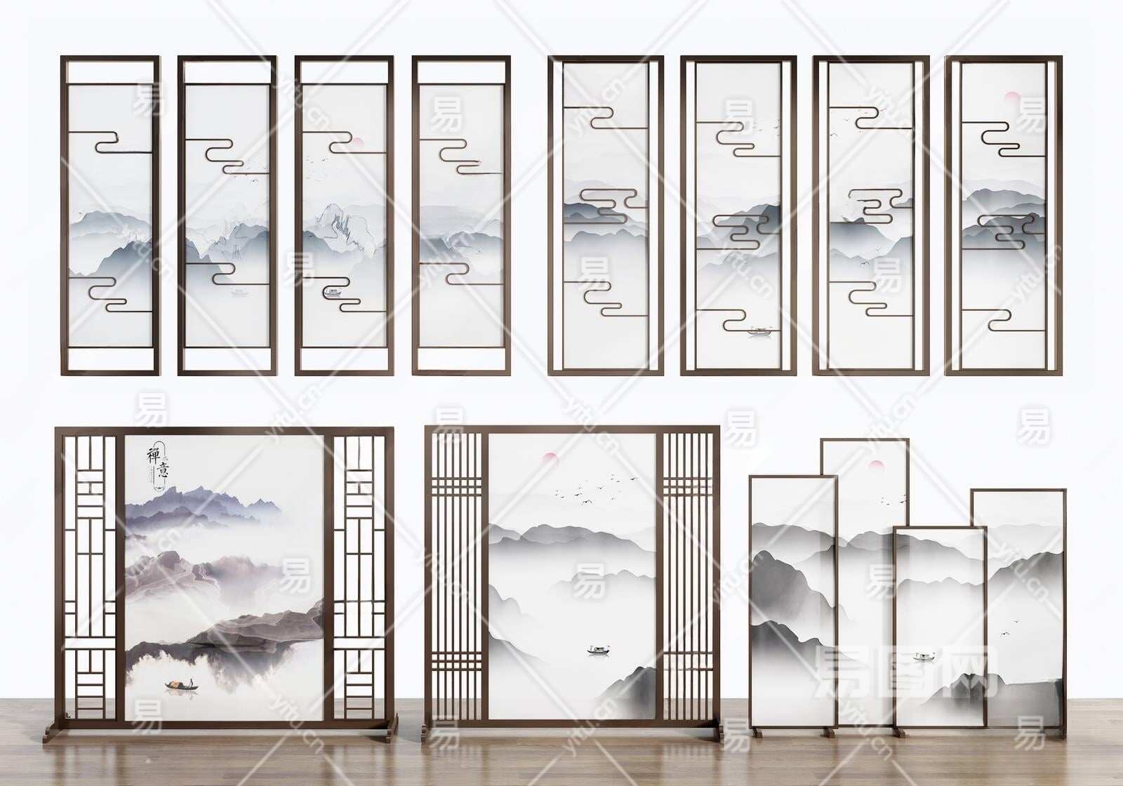 新中式屏风3D模型下载