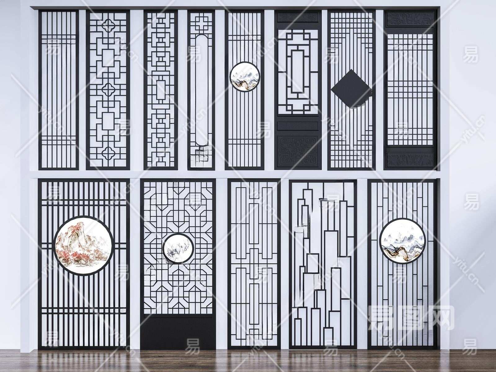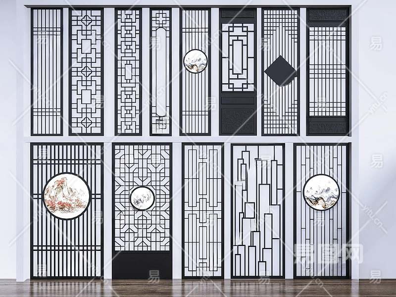 新中式隔断3D模型下载
