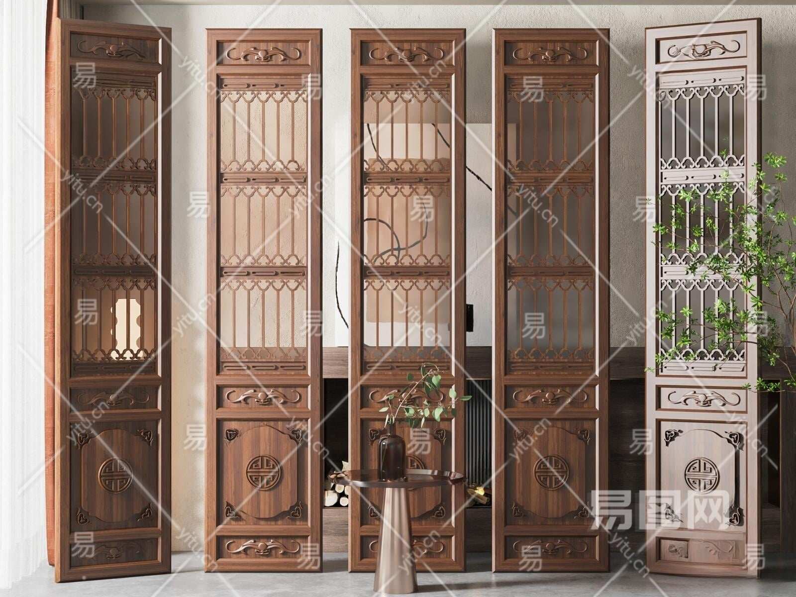 新中式隔断3D模型下载