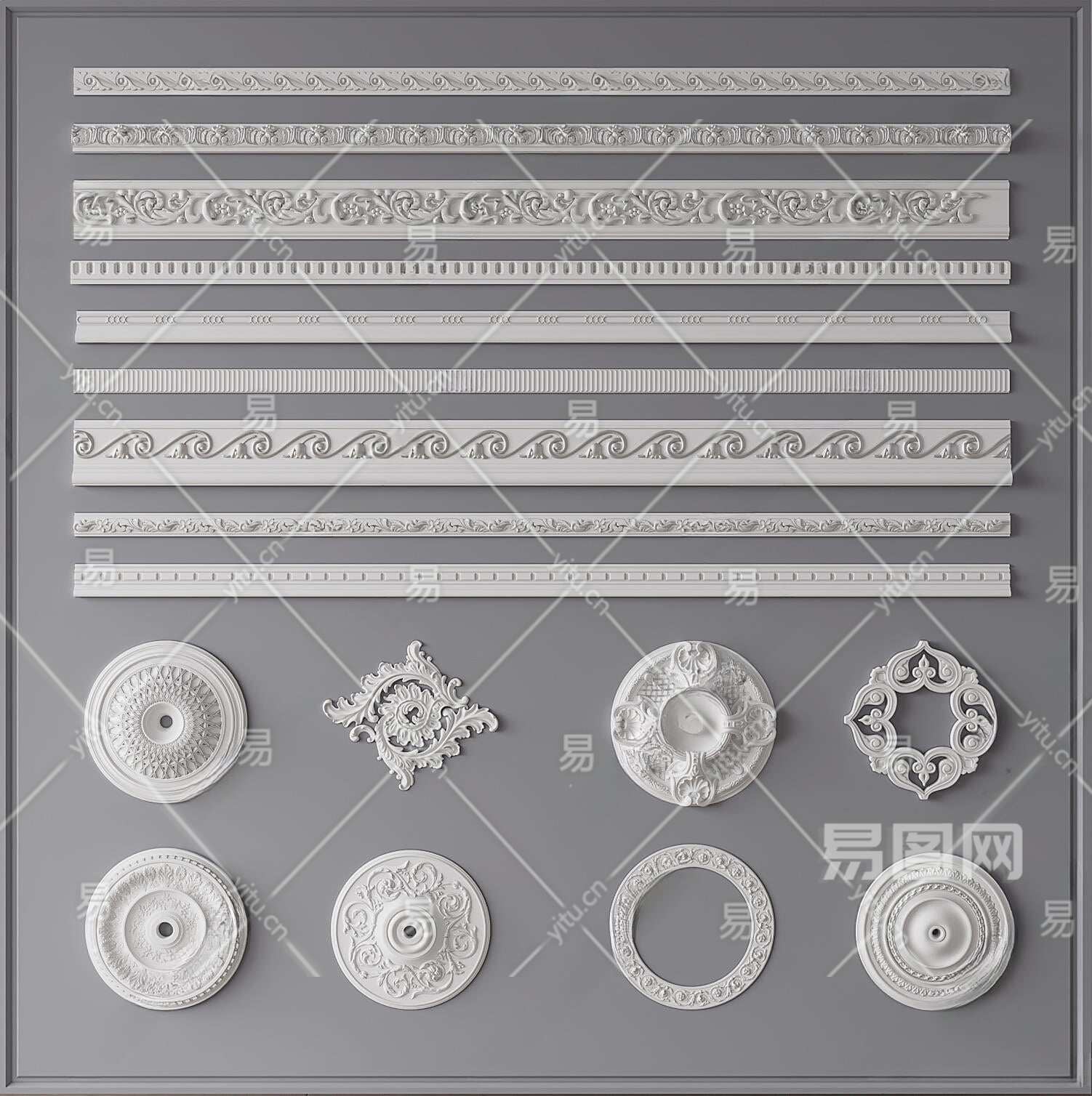 欧式古典石膏线组合3D模型下载