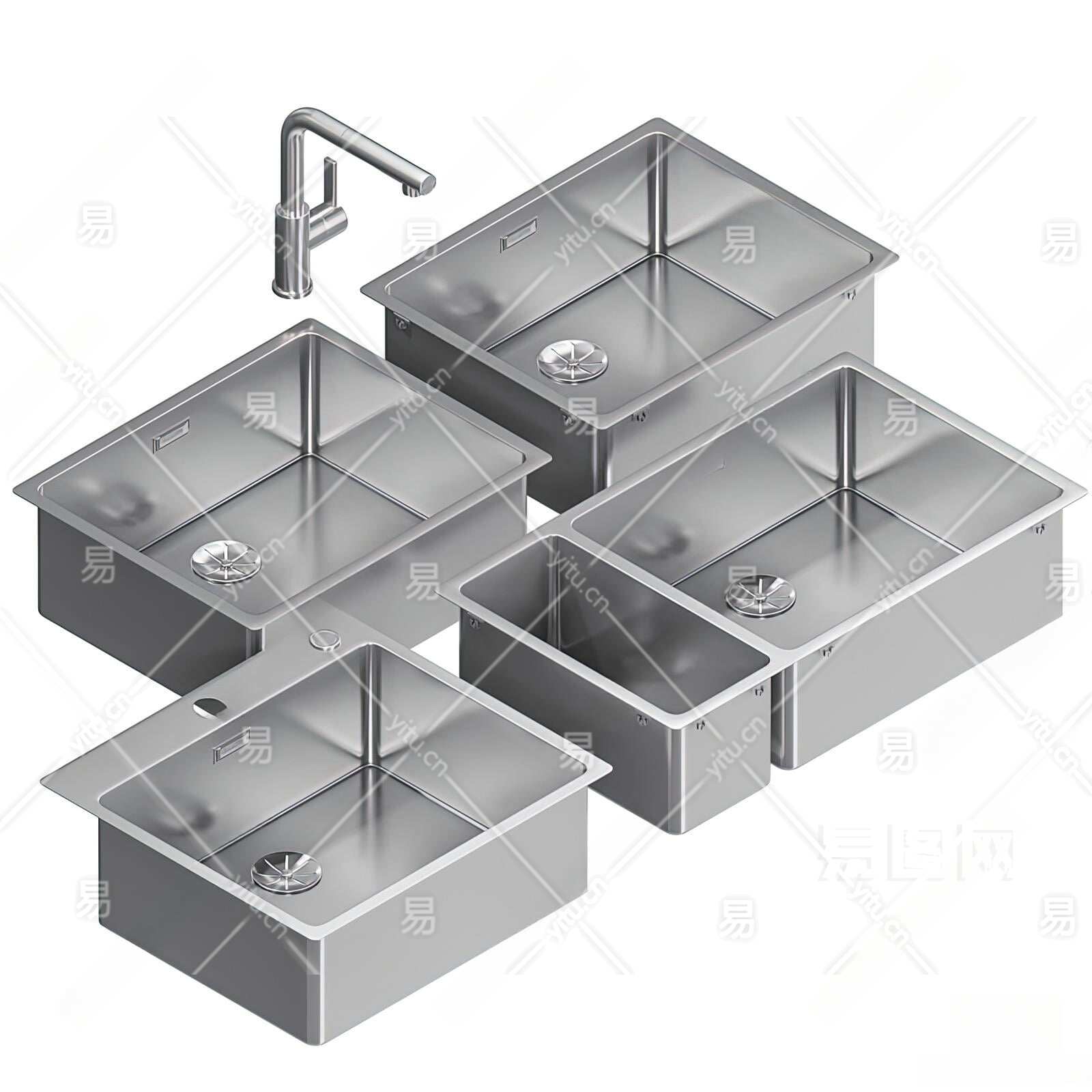 现代不锈钢水槽3D模型下载