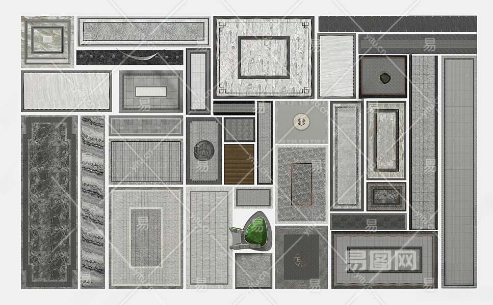 新中式地砖3D模型下载