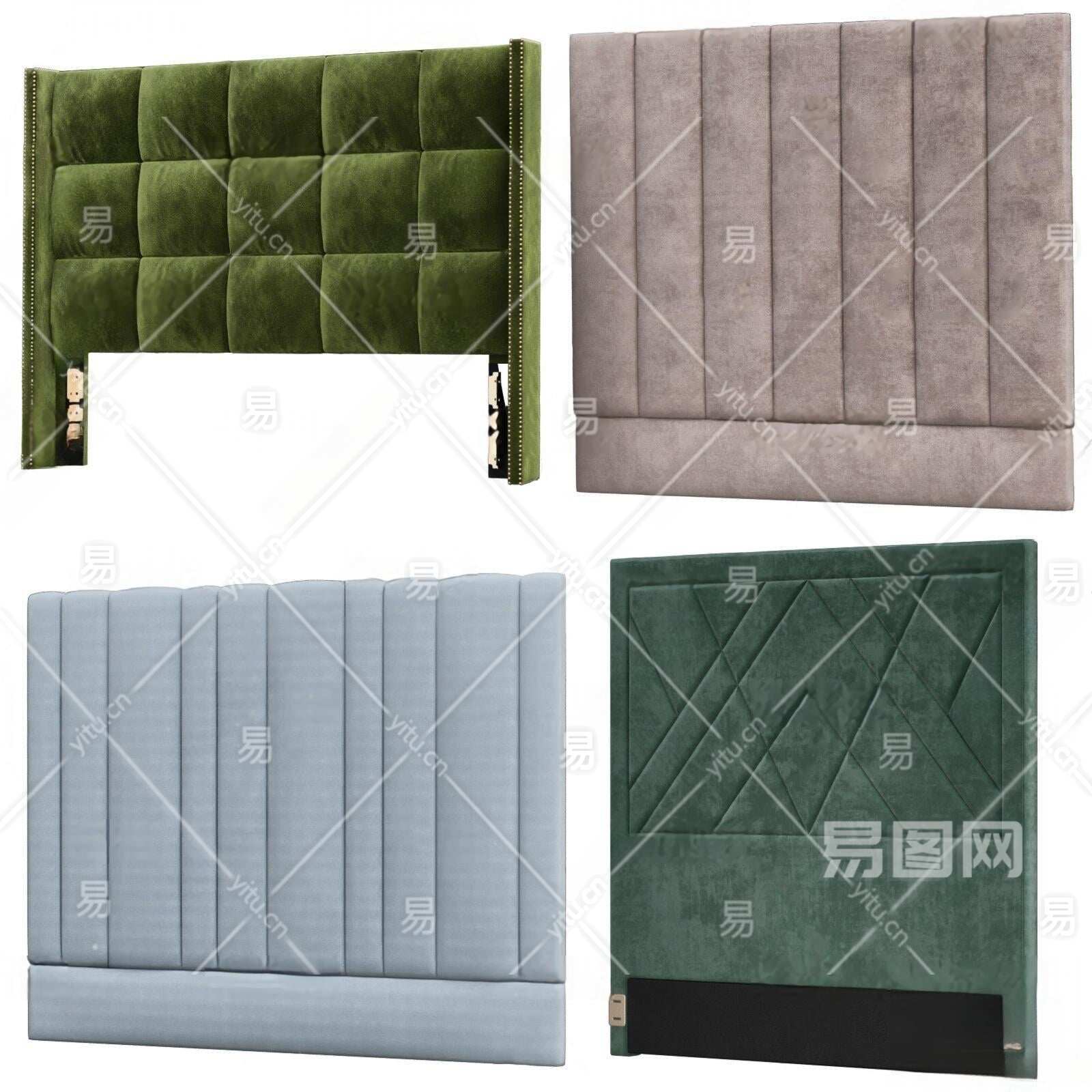 现代布艺床头软包3D模型下载