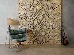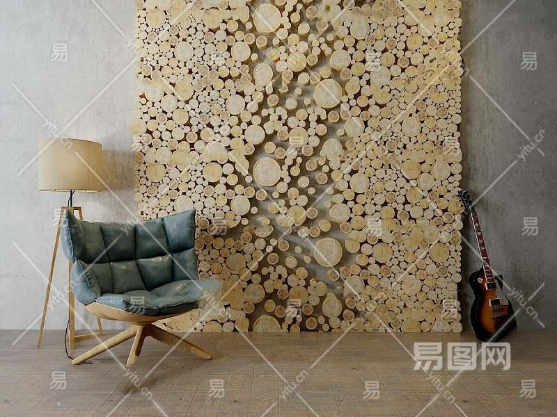 现代木桩背景墙休闲椅落地灯组合3D模型下载