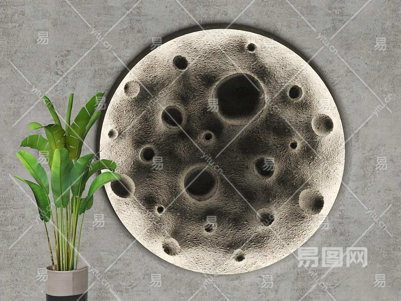 现代月球装饰背景墙3D模型下载