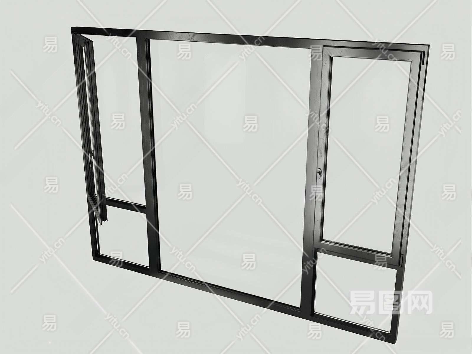 现代平开窗3D模型下载