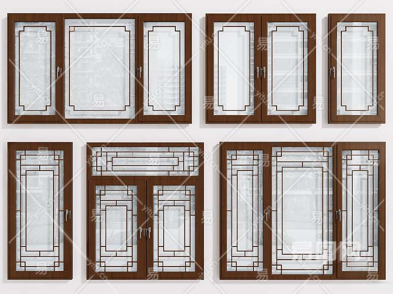 新中式平开窗3D模型下载