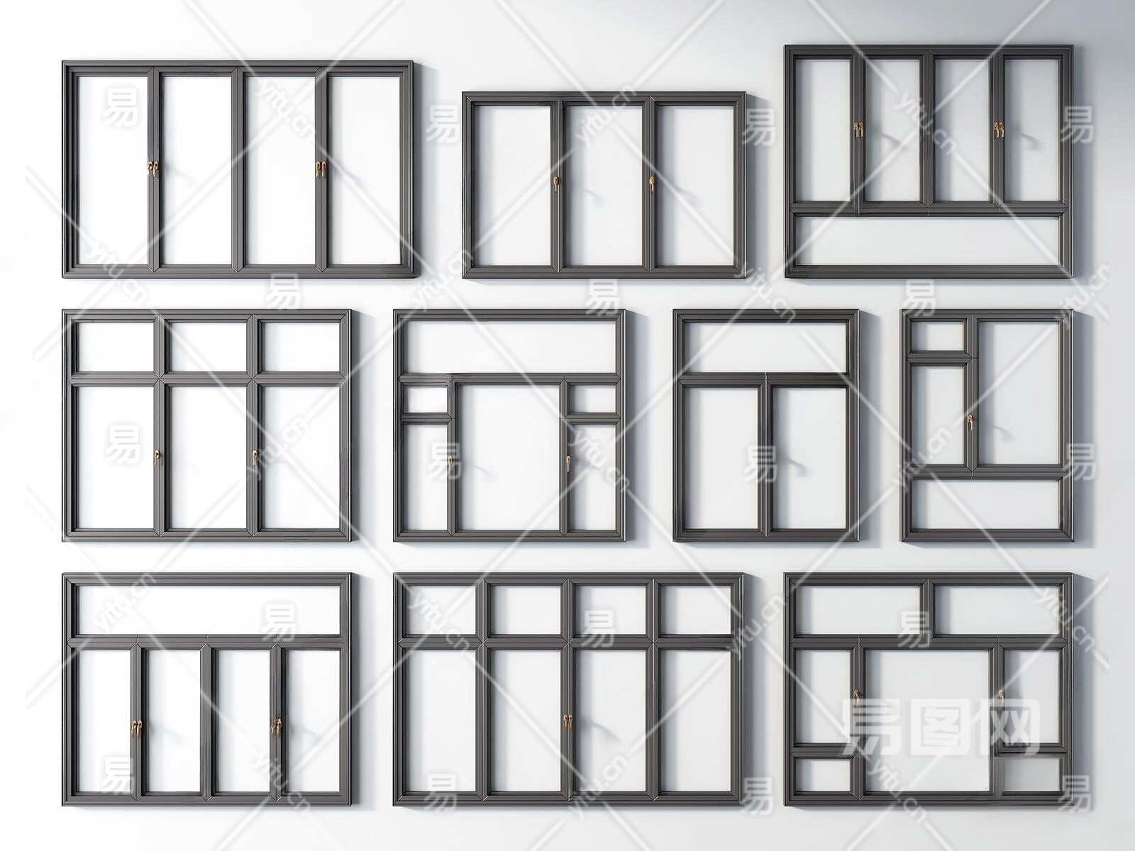 现代平开窗3D模型下载