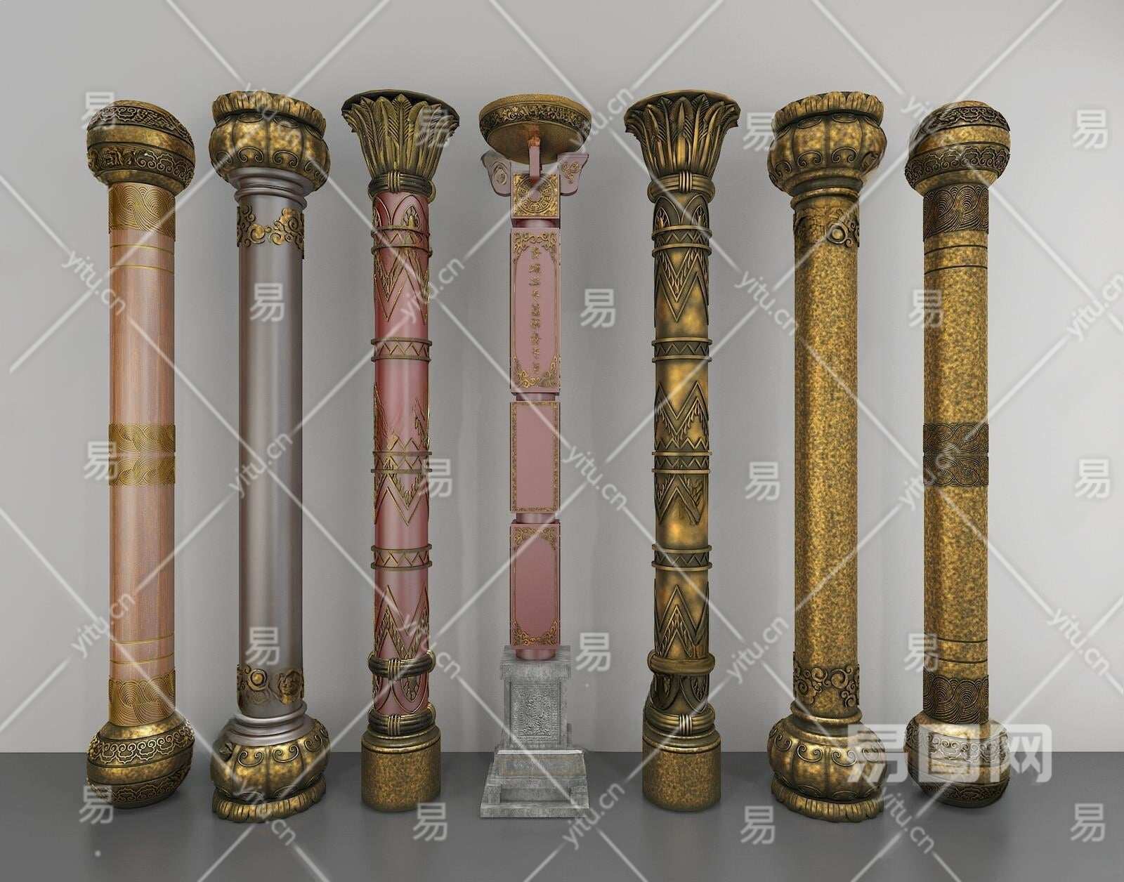 中式古铜立柱3D模型下载