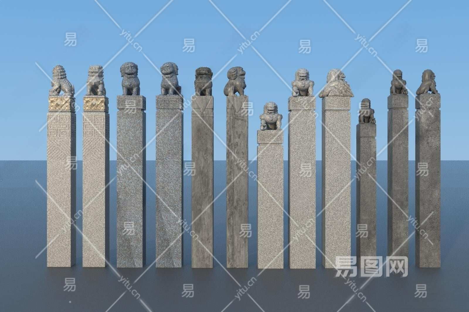 新中式拴马柱3D模型下载