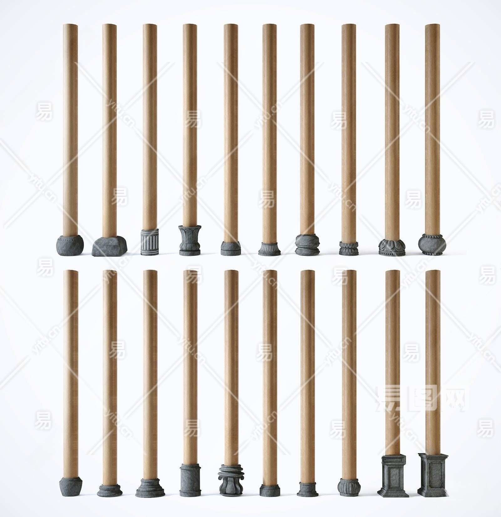 新中式柱子组合3D模型下载