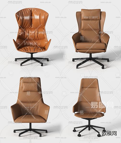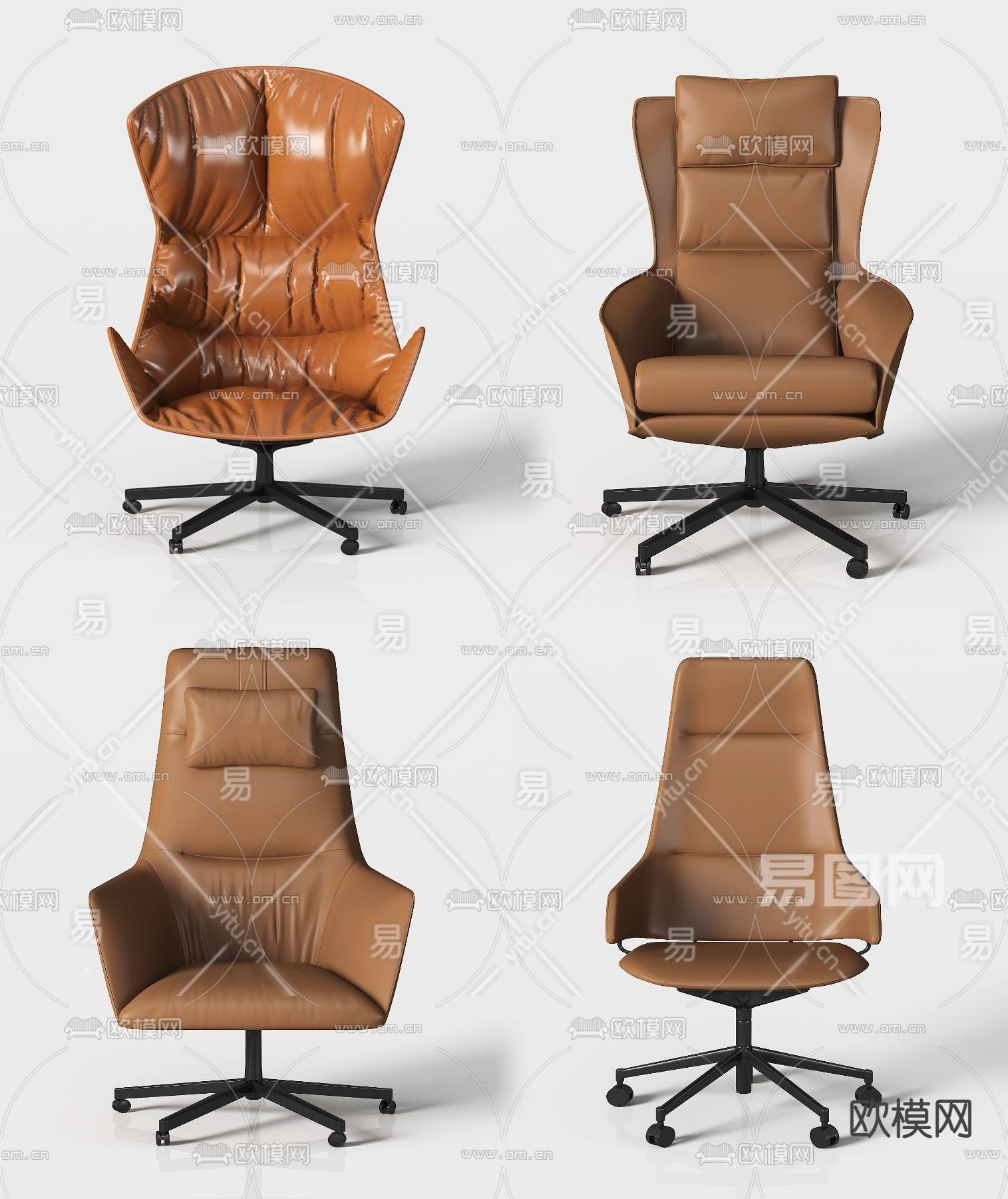 现代办公椅组合3D模型下载