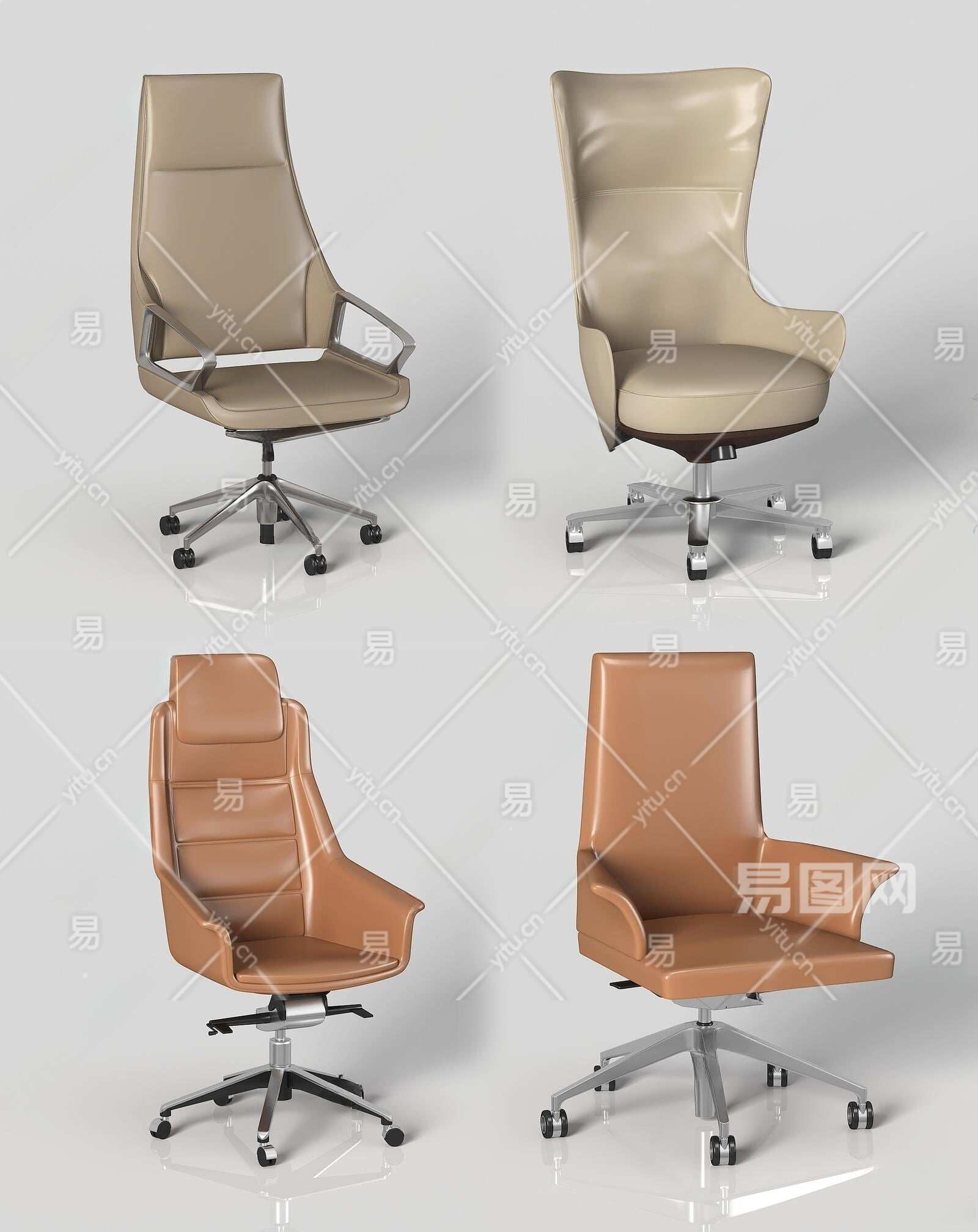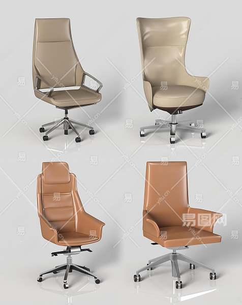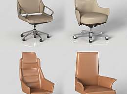 现代皮革办公椅组合3D模型下载