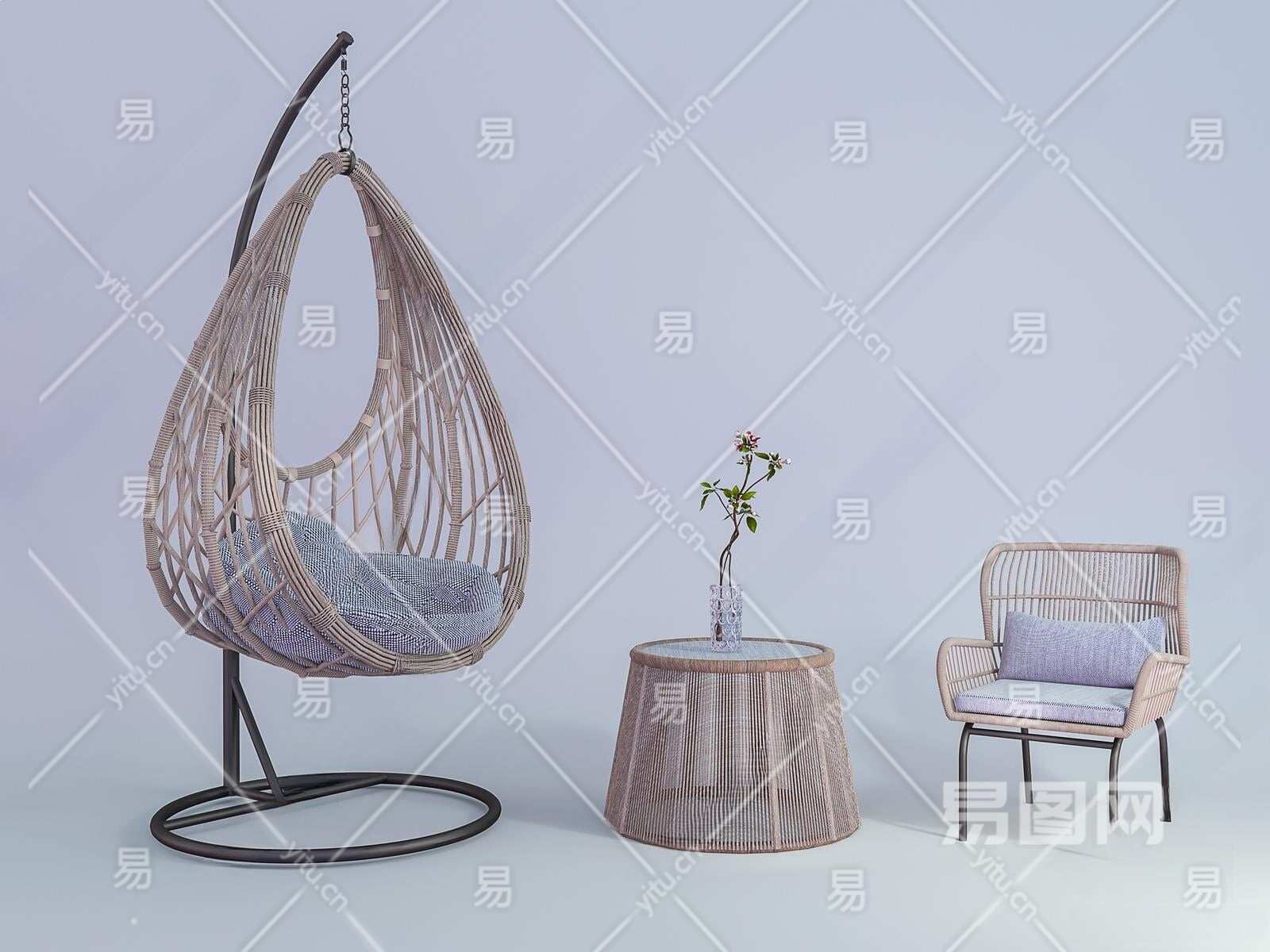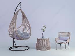 现代时尚藤编吊椅3D模型下载