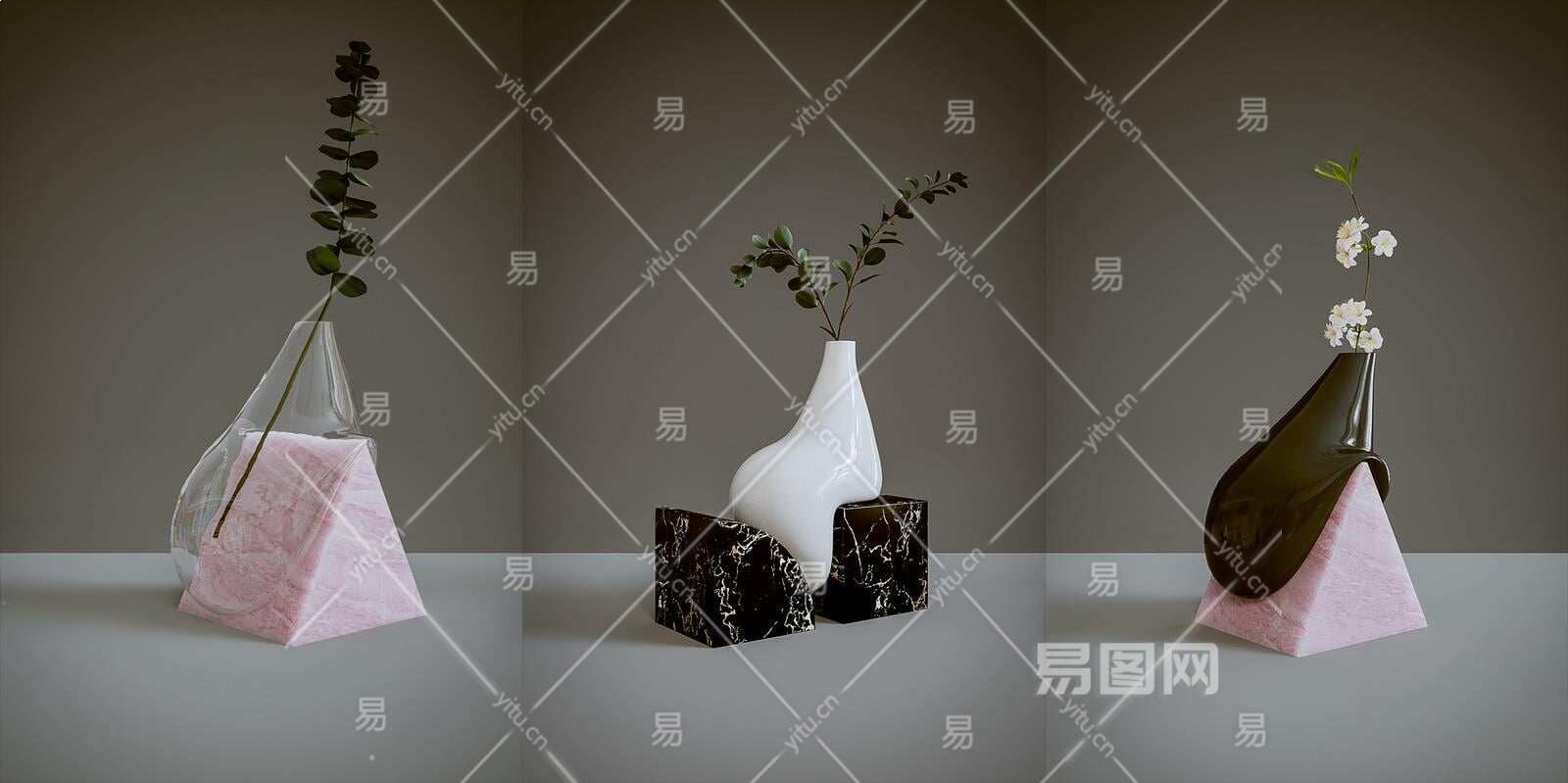 【3D悬赏模型】现代风格花瓶组合3D模型下载