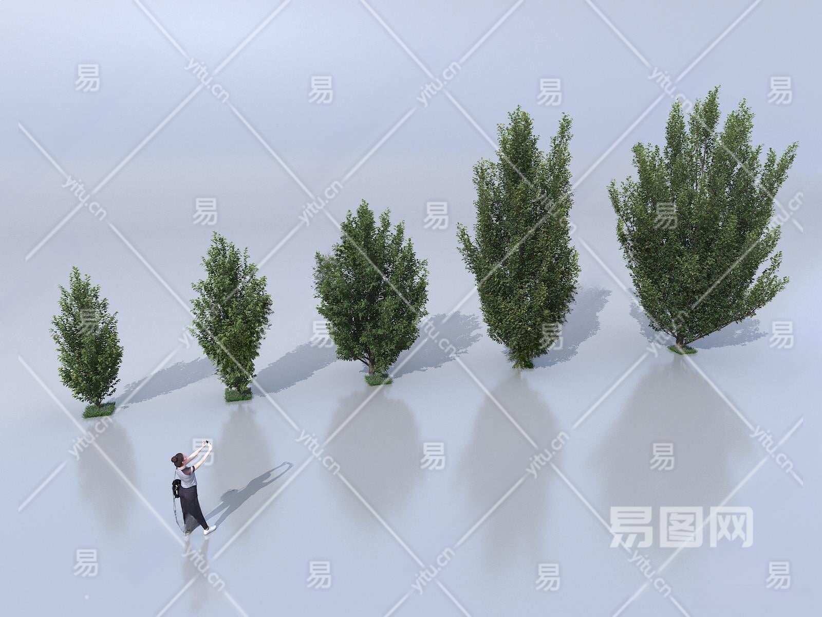 现代密叶小树3D模型下载
