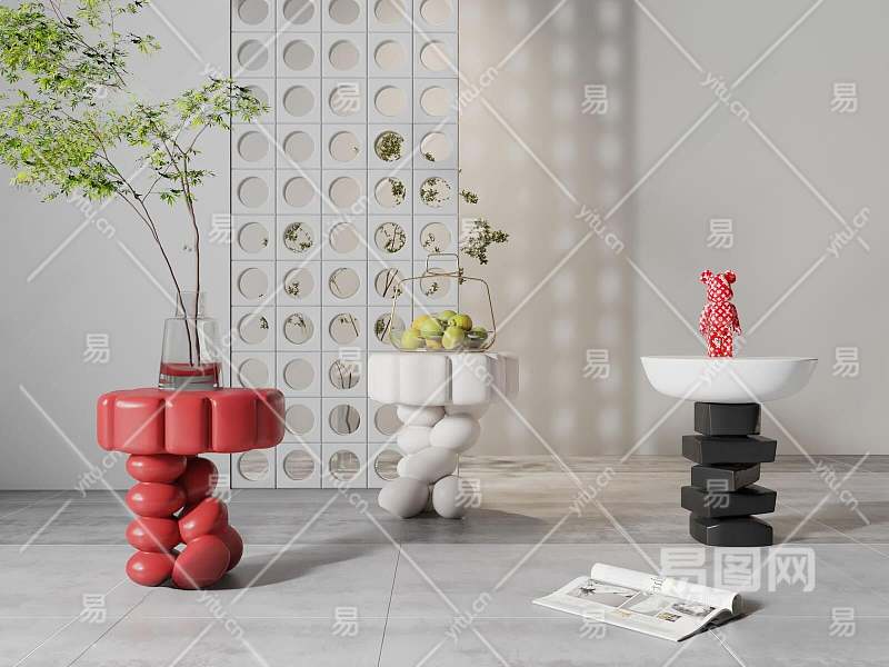 现代边几角几3D模型下载