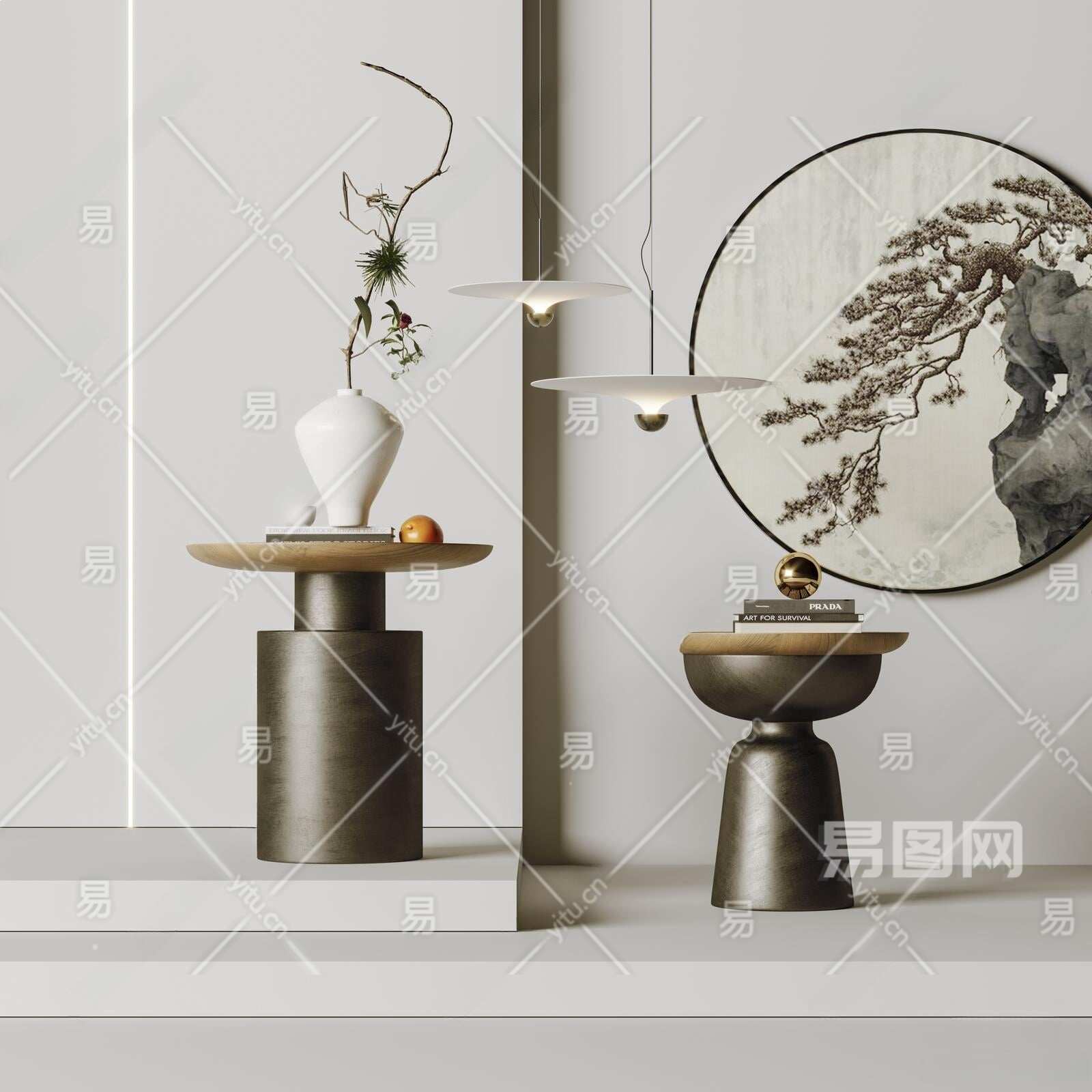 新中式边几组合3D模型下载