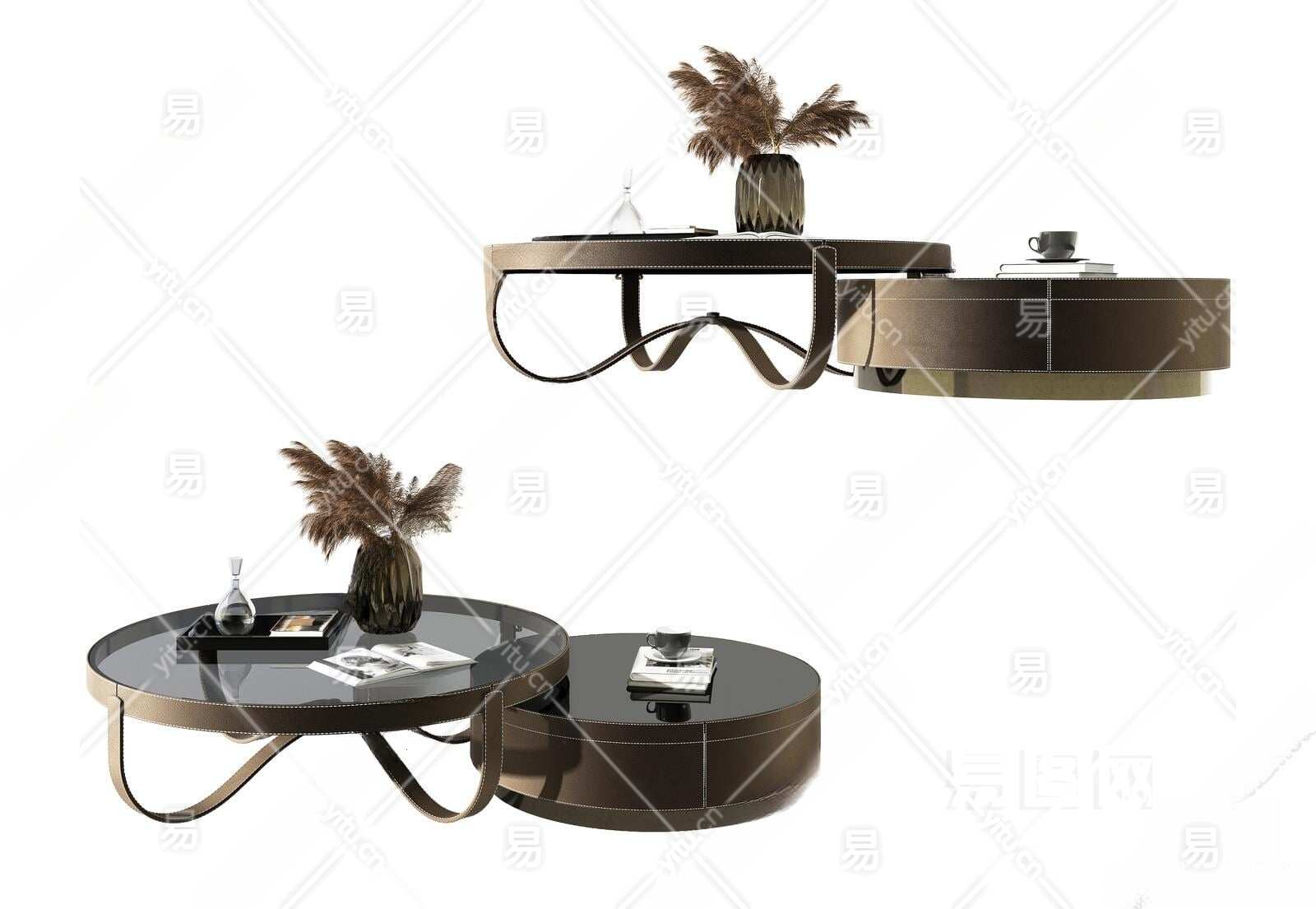 现代茶几组合3D模型下载