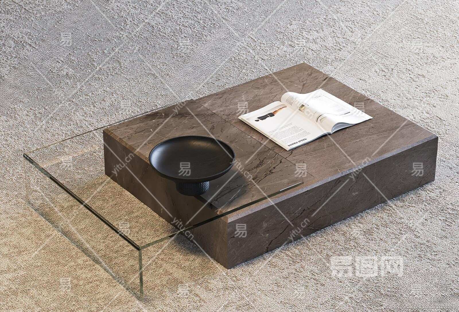 现代茶几组合3D模型下载