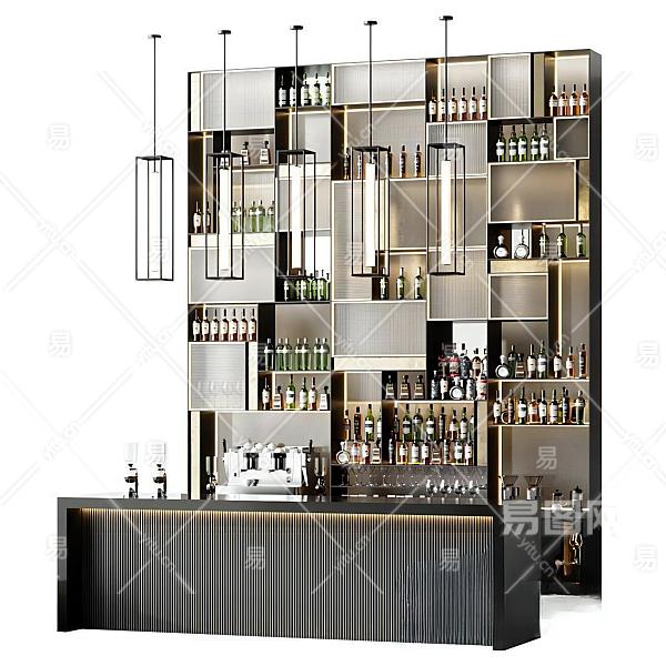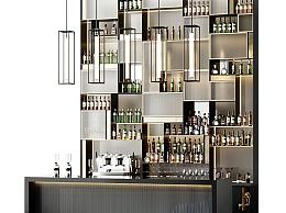 现代吧台 酒水 吊灯 咖啡机 装饰柜