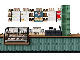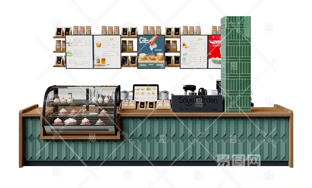 现代咖啡厅 吧台 吧椅 咖啡机 吊灯 收银机 杯子 花砖 工作台 操作台