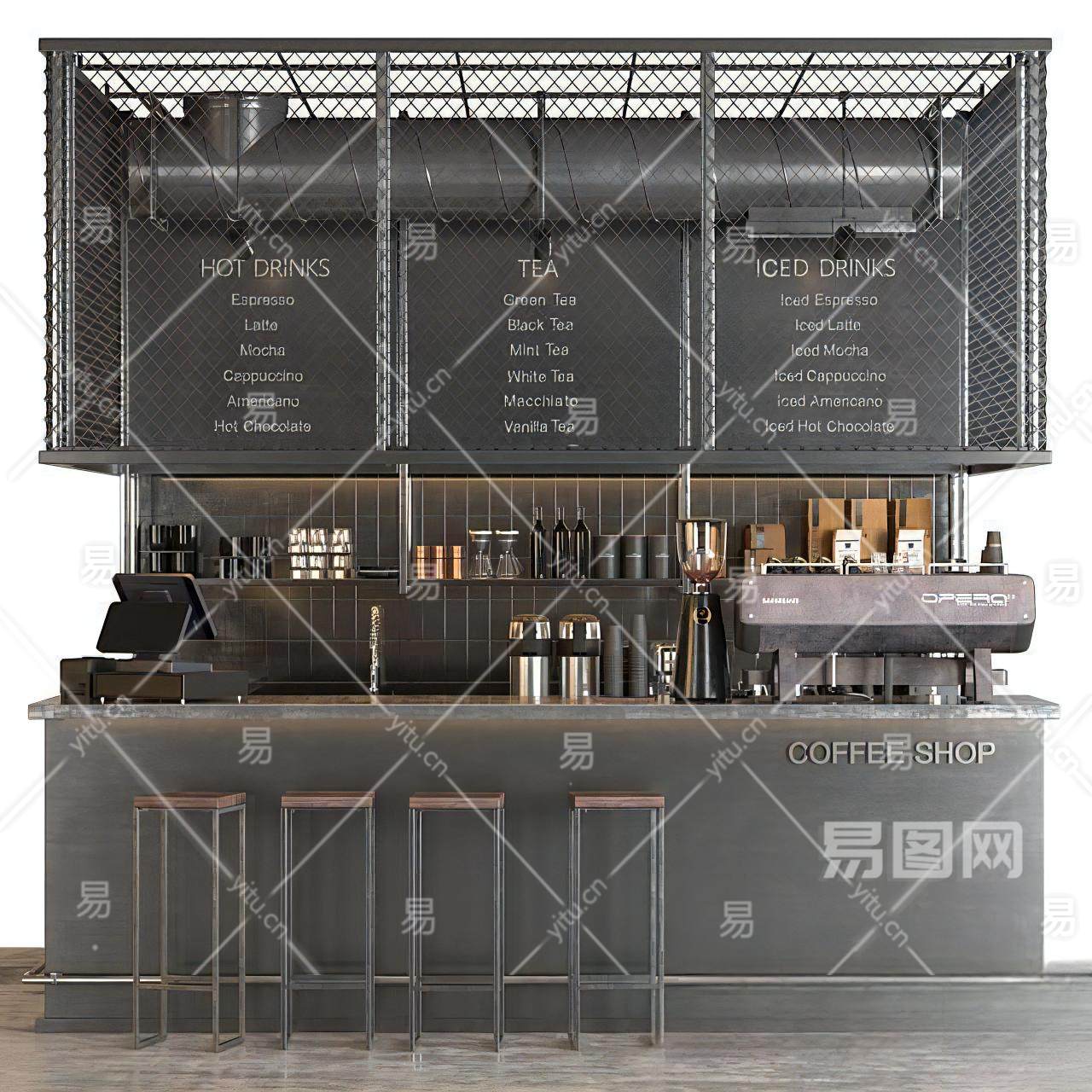现代咖啡厅吧台 咖啡吧台 咖啡机