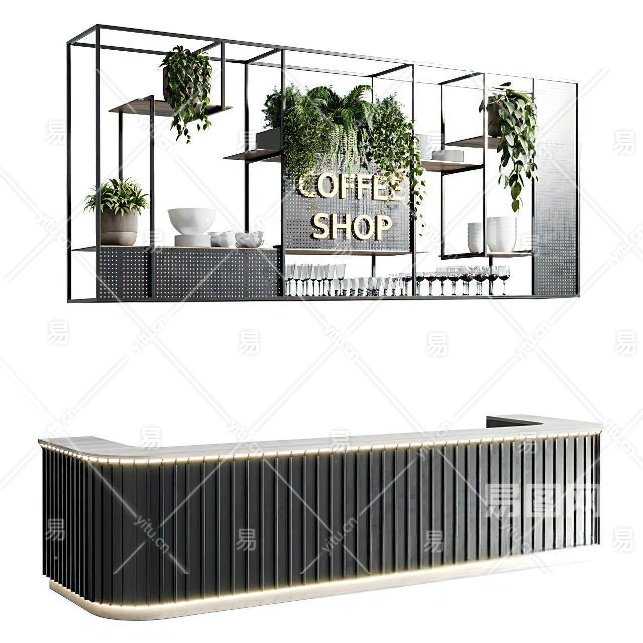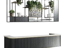 现代咖啡店工作台 绿植摆件 盆栽植物