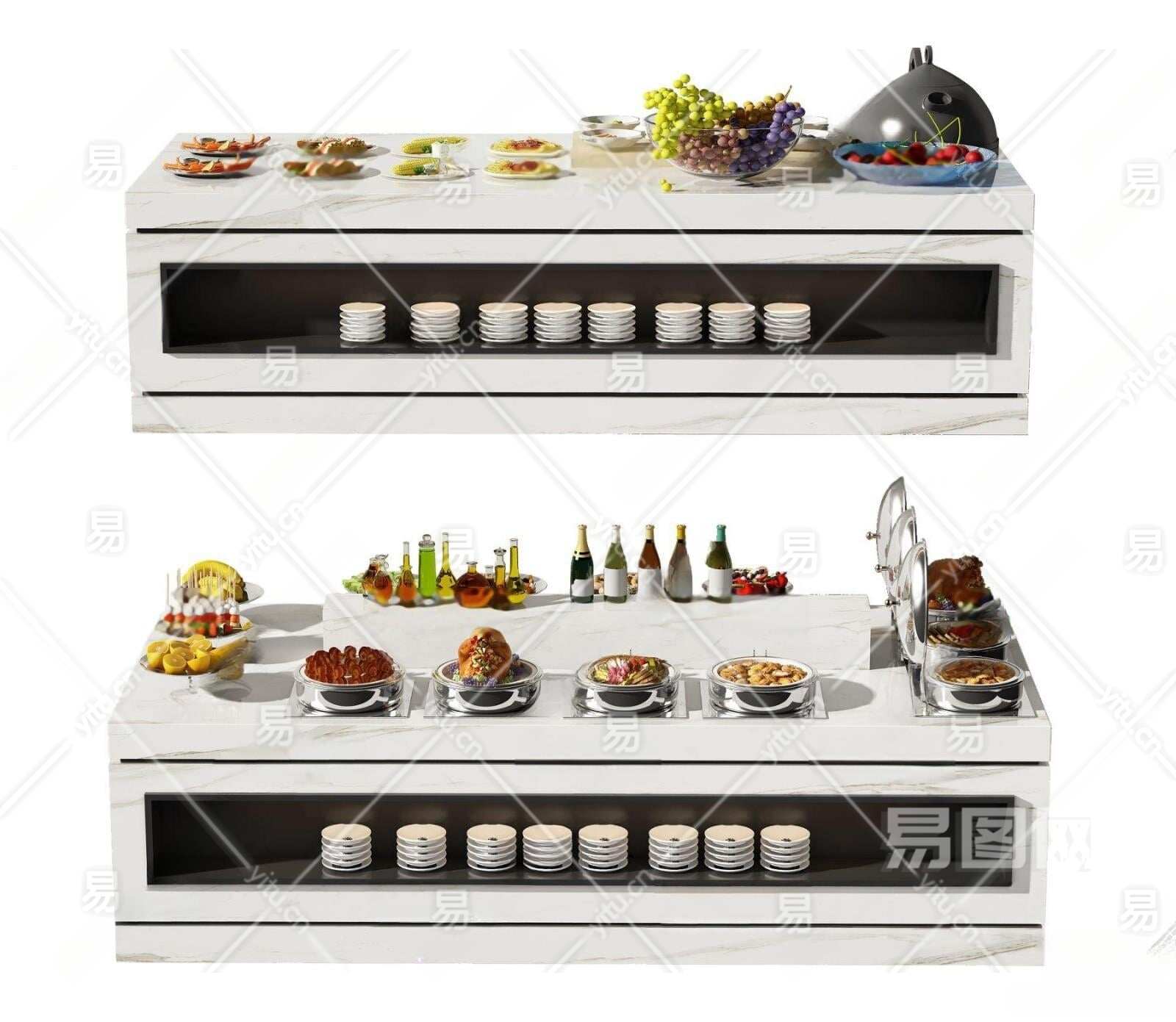 现代自助餐台3D模型下载