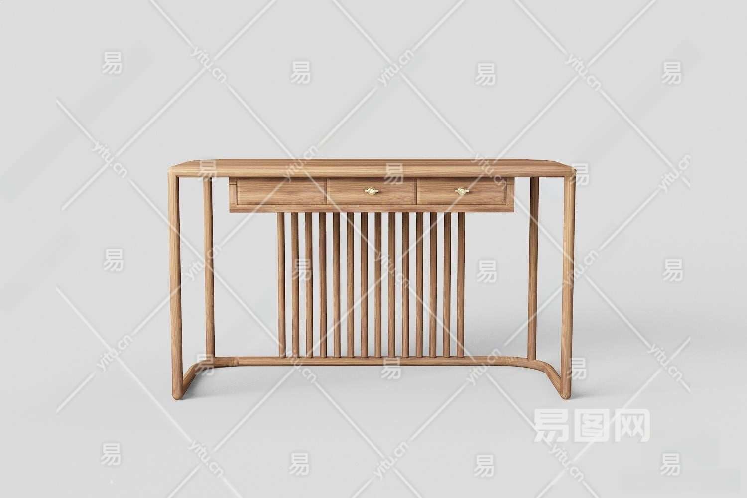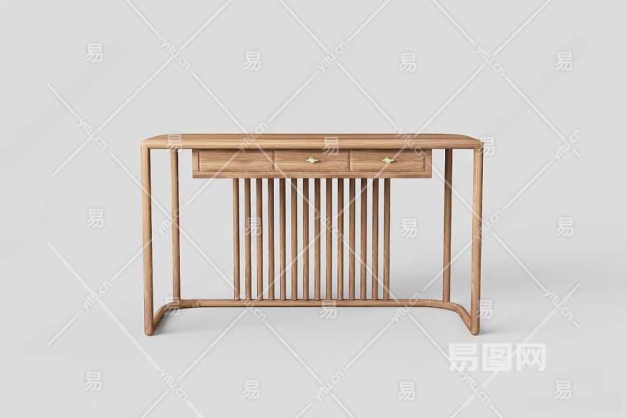 新中式书桌3D模型下载