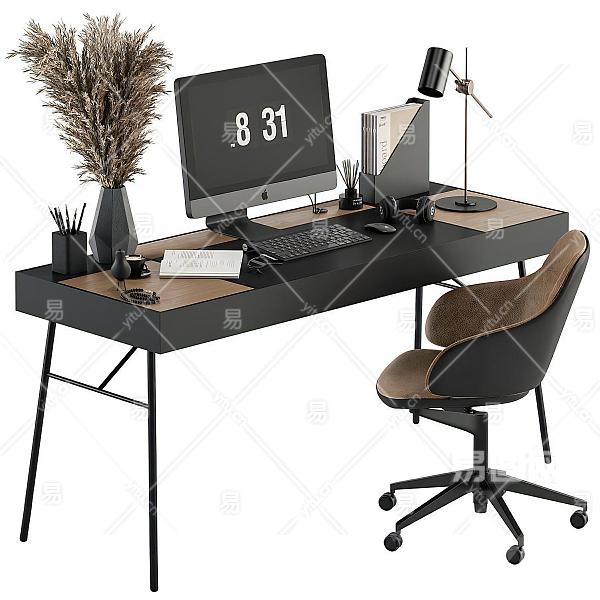 当前的位置:首页 > 3D模型 > 桌椅组合 > 办公桌椅组合 > 家庭办公室黑色和木桌 - 办公家具