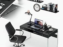 现代办公桌 苹果笔记本 电脑 办公椅 办公用品 摆件 办公台灯 苹果手机
