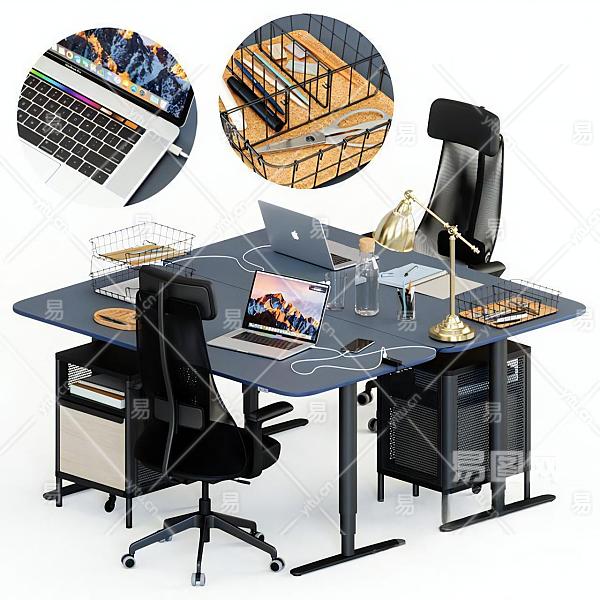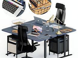 现代办公桌椅 笔记本电脑手机 办公文具 文件夹 笔记本
